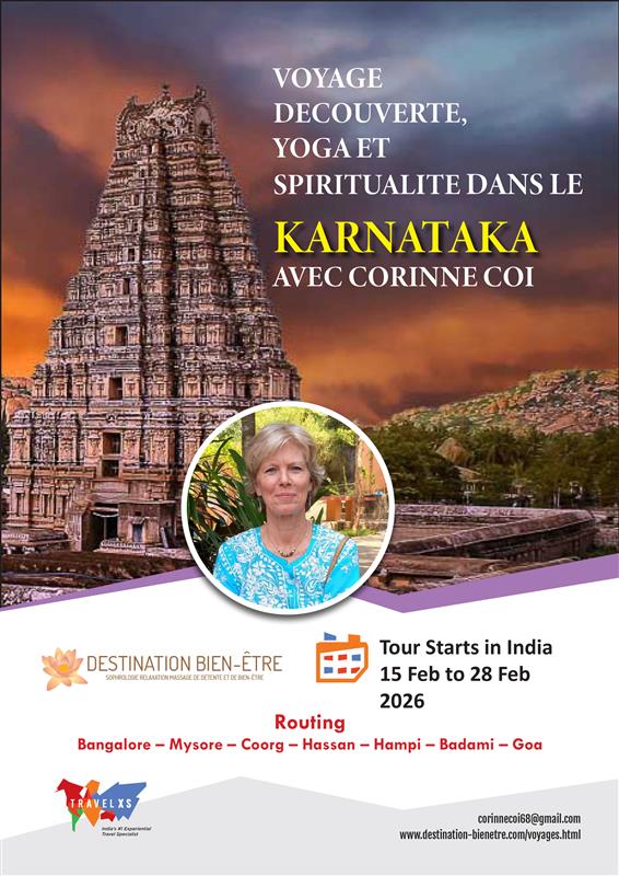 J’ai le plaisir de vous annoncer l’organisation d’un prochain voyage en Inde du Sud , dans la magnifique région du Karnataka , alliant découverte culturelle, pratique du yoga
